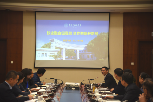 在交流发言环节,陆永潮教授介绍了科研团队在四川盆地页岩油勘探开发领域工作基础和最新进展;叶加仁教授回顾了与中原油田开展项目合作的历史,介绍了石油地质系主要科研领域和人才培养情况;蔡忠贤教授介绍了石油工程系传统优势学科方向和新兴学科方向拓展、所在团队研究进展等情况;王小明副教授、张磊副教授分别介绍了盆地矿产系、石油工程系办学发展、教师团队、科研平台、人才培养等情况。宿亚仙介绍了油田后三年科技攻关重点项目实施情况;科技信息部油田专家刘晓敏介绍了油田科技项目规划管理、高水平实验室和科研平台建设等情况;党委组织部(人力资源部)油田专家马传根介绍了地大校友在油田工作和发展总体情况,同时就油田人才引育政策、招聘需求、员工薪酬待遇和发展支持等作了说明;物探研究院院长万涛介绍了物探研究院主要业务领域和当前技术需求情况。双方围绕非常规能源勘探开发、石油伴生矿产勘查、油田增产增效、人才培养、技术交流、学生就业等交流讨论。