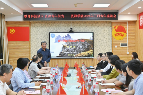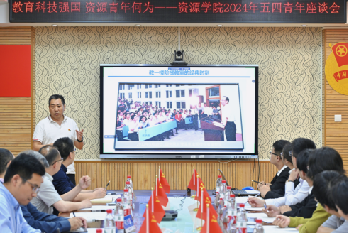 以挺膺之姿,逐强国之梦。4月29日晚上,十大买球官方网站召开“教育科技强国、资源青年何为”五四青年座谈会,学习习近平总书记关于青年工作的重要思想和关于能源资源的重要论述,引导资源青年坚定地质报国理想,锤炼本领,勇担重任,在投身国家资源能源伟大事业中跑出青春加速度。校团委书记朱丹,十大买球官方网站党委书记高复阳、院长严德天,副院长沈传波、党委副书记谭文伦,全国模范教师、全国高校黄大年式教师团队负责人焦养泉,学院科技发展委员会副主任何治亮,各系党支部委员和青年教师代表,学生代表,全体辅导员和团委、青年教师联合会、学生会、研究生会、红星青年志愿者协会、融媒体中心、学生党建工作办公室负责人参加会议。谭文伦主持会议。