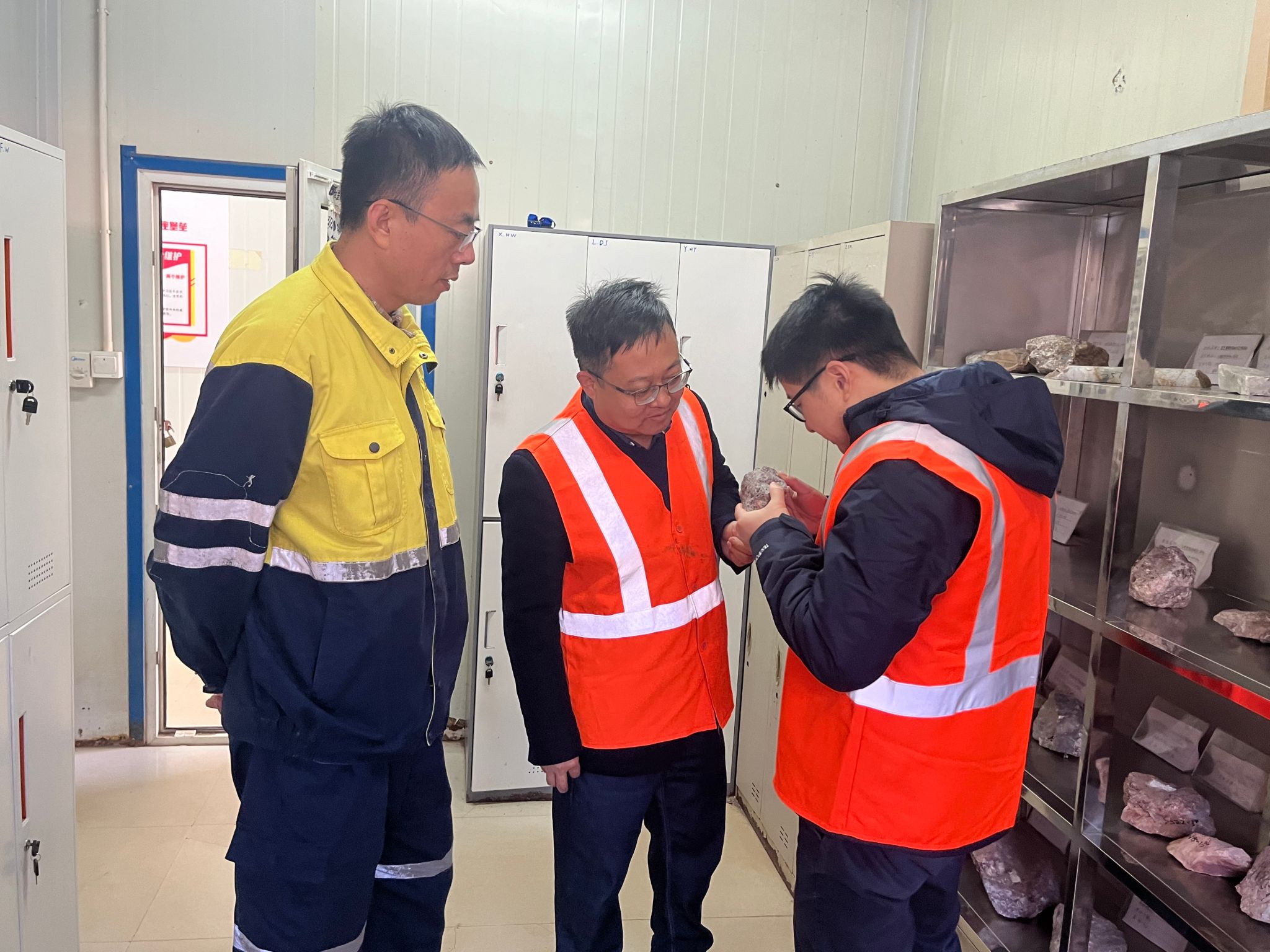 期间,高复阳一行实地参观了选矿车间、智慧矿山管控平台、矿山办公区和矿石标本室。