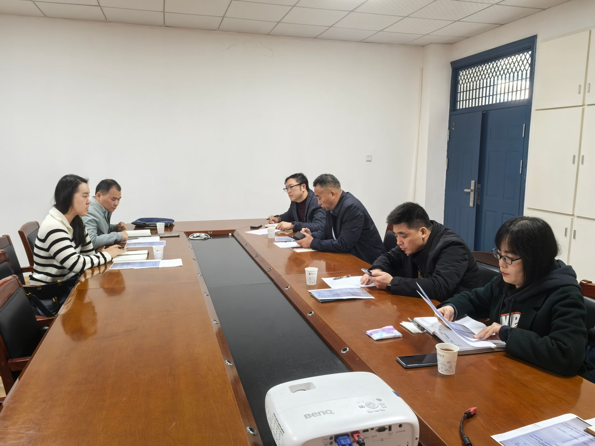 会上就岩心密集架施工方案、实验室待完成施工项目内容、消防设施恢复、工程进度严重滞后、工程质量检测等工程建设问题进行重点督促。