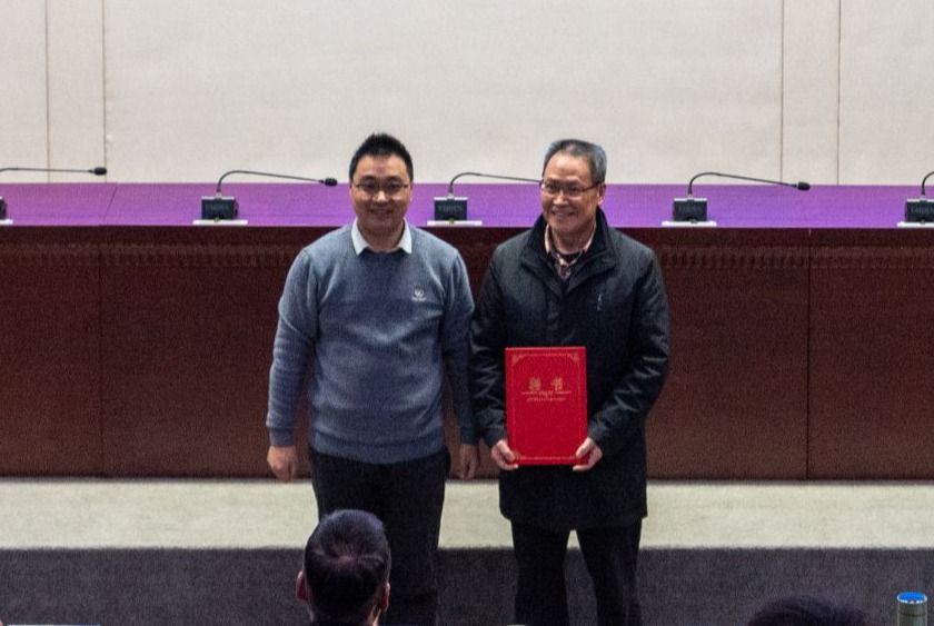 十大买球官方网站党委书记汪再奇为“源·创科协”指导顾问周江羽颁发聘书。