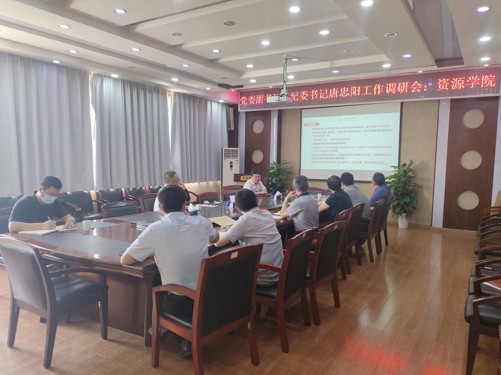 9月29日下午,学校党委副书记、纪委书记唐忠阳到十大买球官方网站调研,了解学院事业发展情况,指导学院党建和纪检工作。学院领导班子全体成员参加会议,党委书记高复阳主持会议。