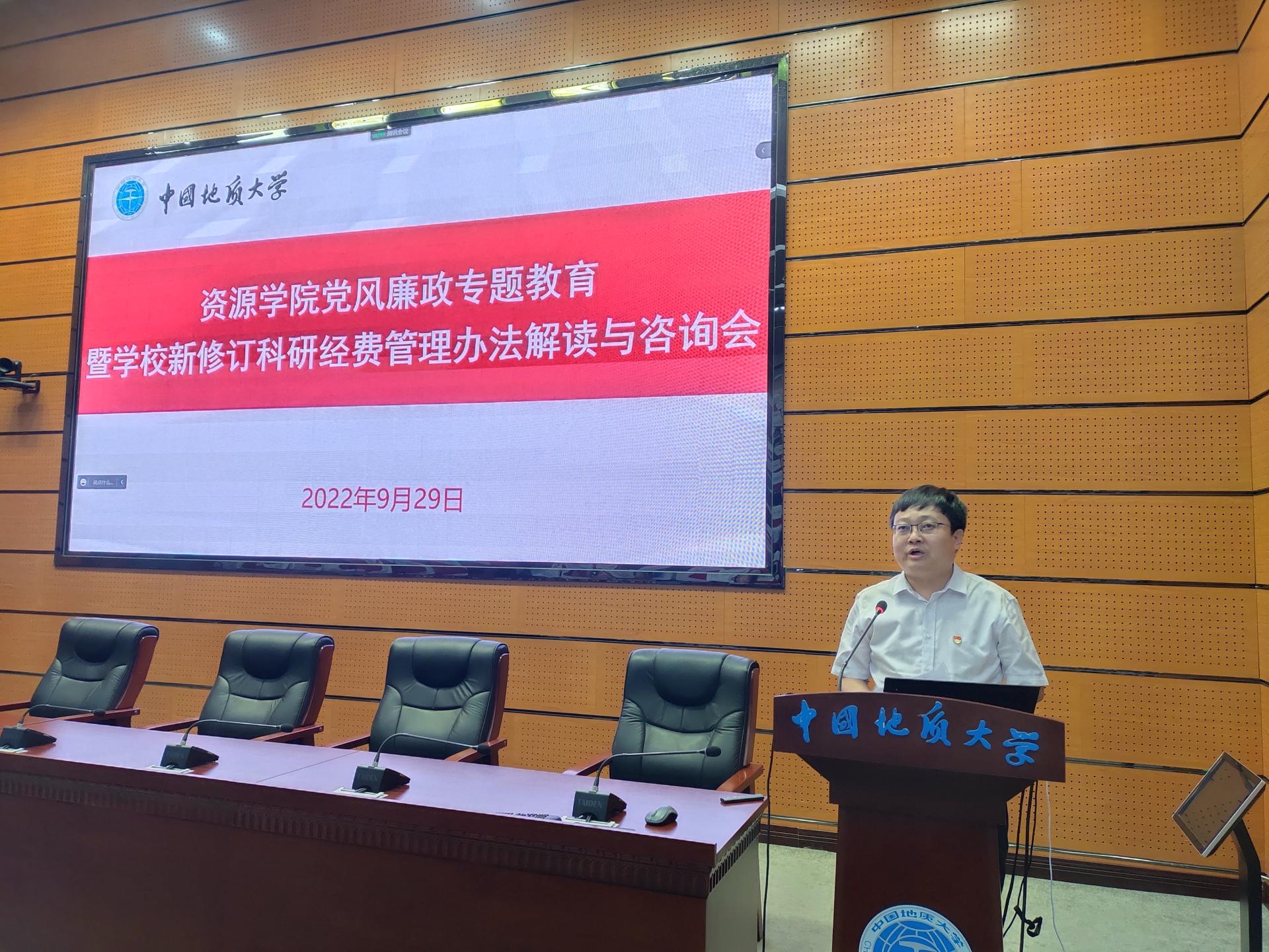 9月29日下午,十大买球官方网站党委在东区教学综合楼A0113会议室召开党风廉政专题教育暨学校新修订科研经费管理办法解读与咨询会。财务与资产管理部部长杨从印,副部长马晓霞、彭磊,相关科室负责人,学院领导班子全体成员、全院教职工、学生代表参加会议。会议以线上、线下相结合的形式进行,学院党委书记高复阳主持会议。