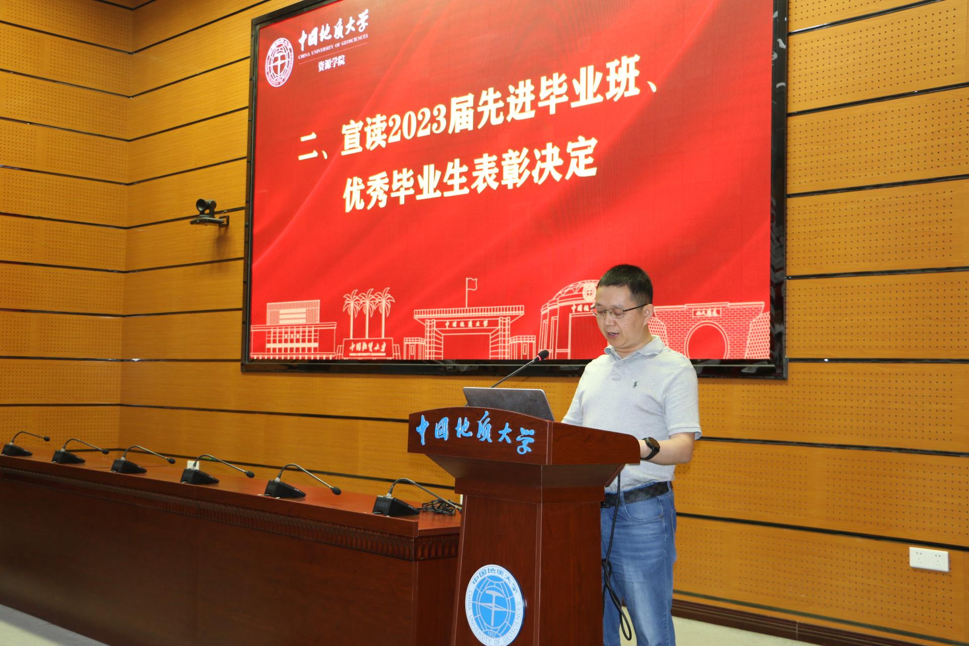 副院长沈传波宣读2023届先进毕业班、优秀毕业生的表彰决定。他希望广大毕业生以受表彰的同学为榜样,在新的工作学习中开拓创新、积极进取,以一流的成绩为母校增光、为人生添彩,为以中国式现代化全面推进中华民族伟大复兴贡献青春力量。
