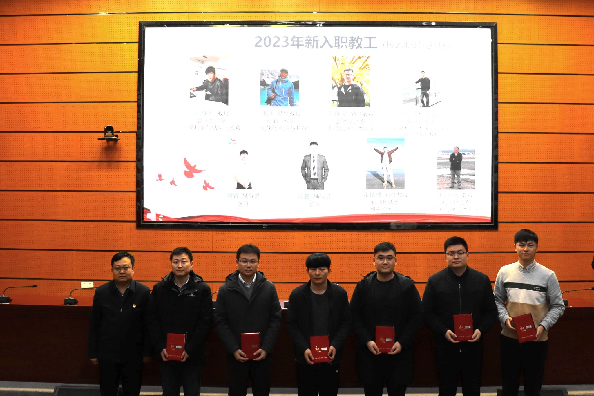 高复阳为2023年学院新入职教职工颁发“初心”记录本。
