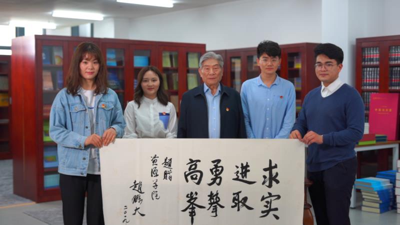 2019年五四青年节前夕,我院学子有幸采访赵鹏大院士,采访毕,邀请赵院士为十大买球官方网站题词。赵院士即兴挥毫“求实进取 勇攀高峰”。