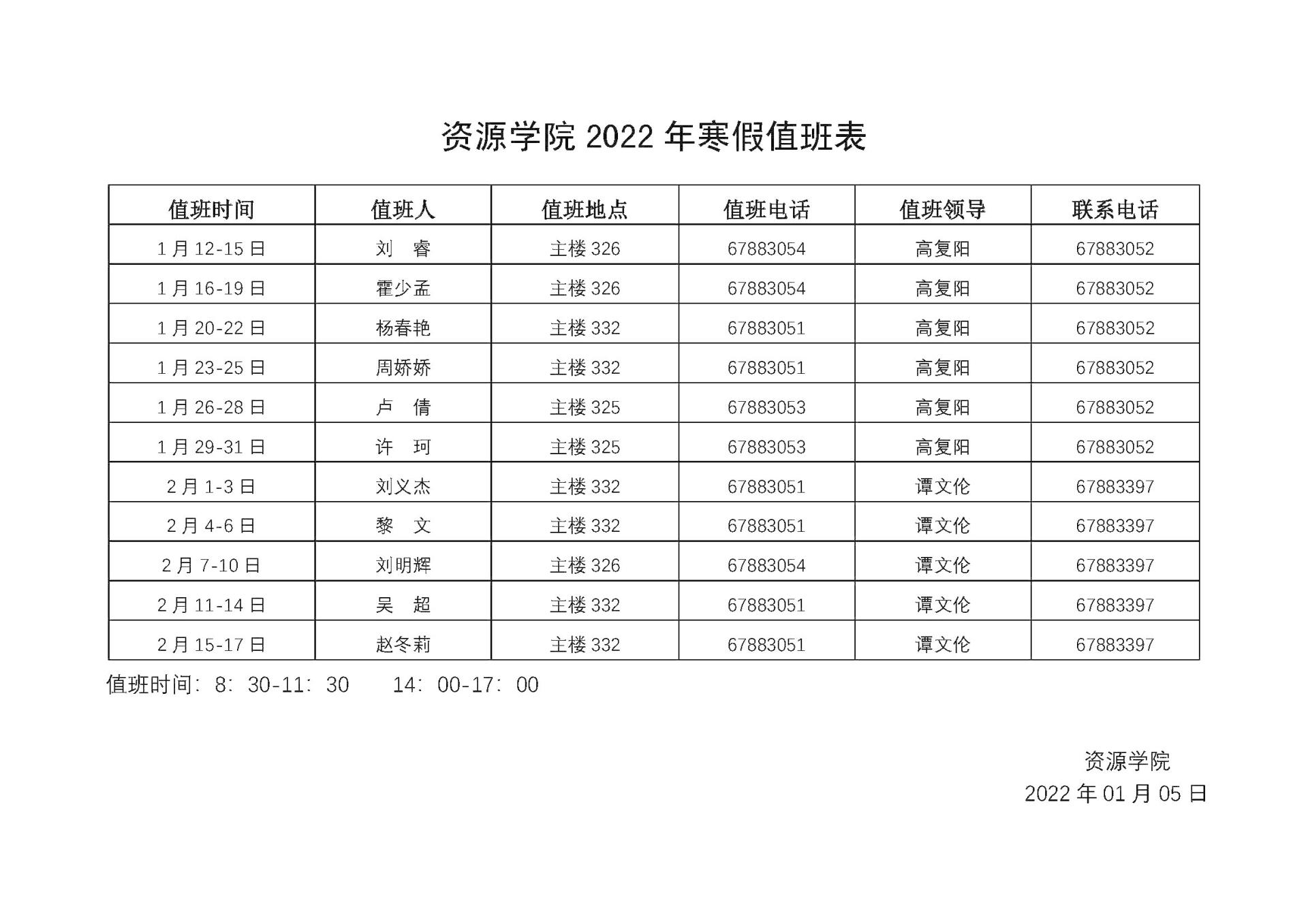 十大买球官方网站2022年寒假值班表