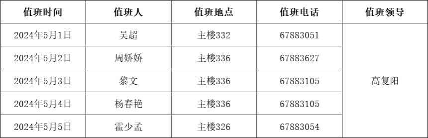 附件1:十大买球官方网站2024年“五一”假期值班表