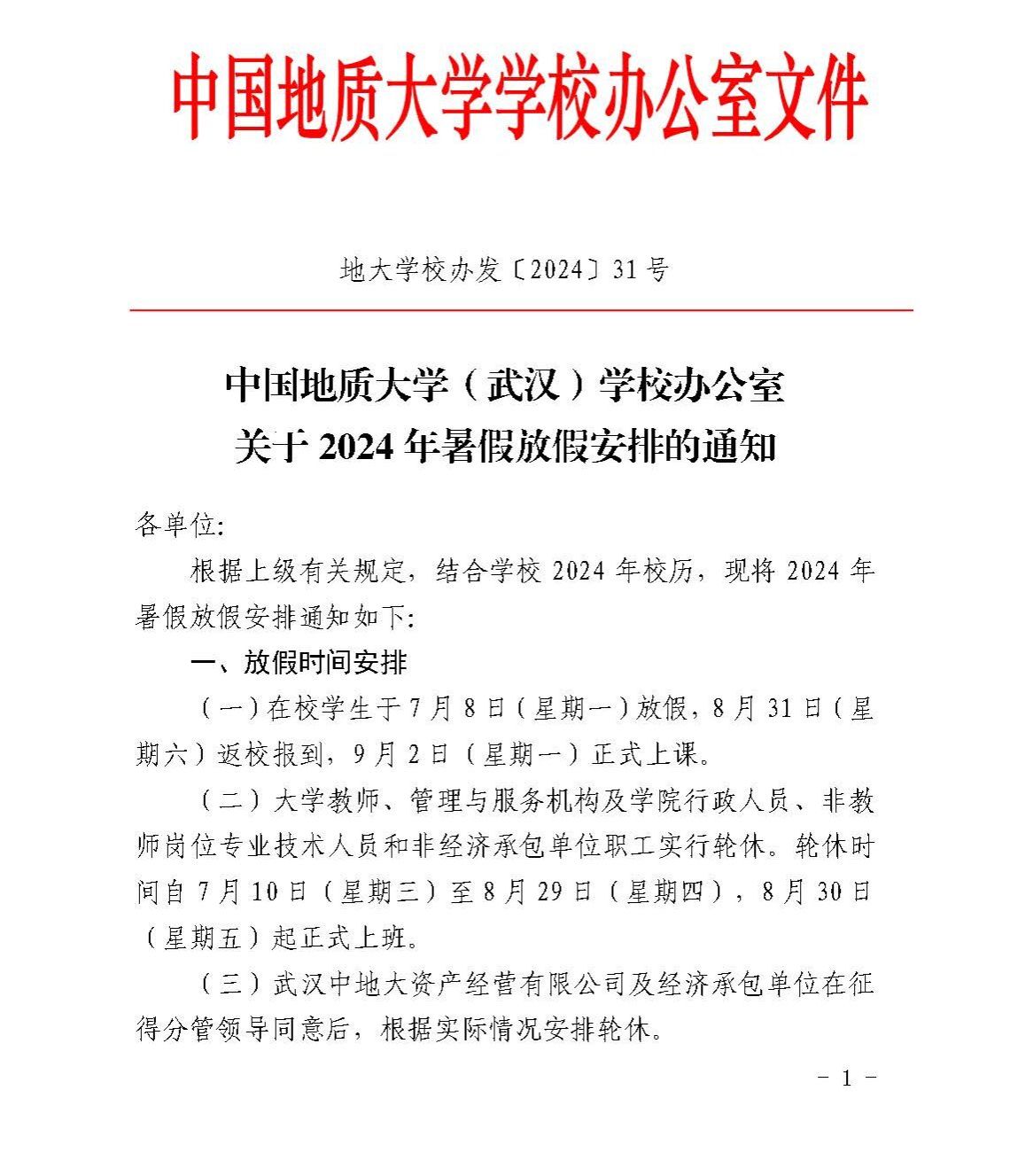十大买球官方网站(武汉)关于2024年暑假放假安排的通知