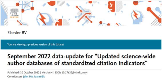 数据来源:September 2022 data-update for "Updated science-wide author databases of standardized citation indicators" - Elsevier BV