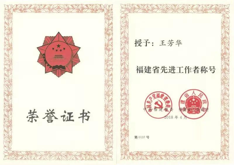 2018年福建省先进工作者称号