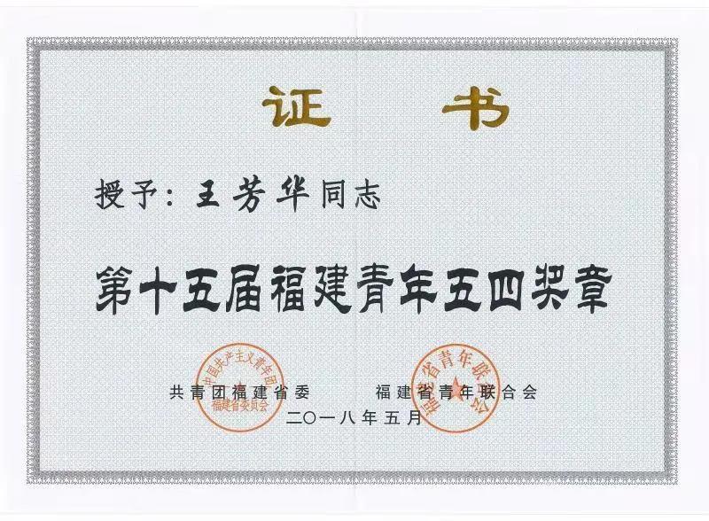 2018年第十五届福建青年五四奖章