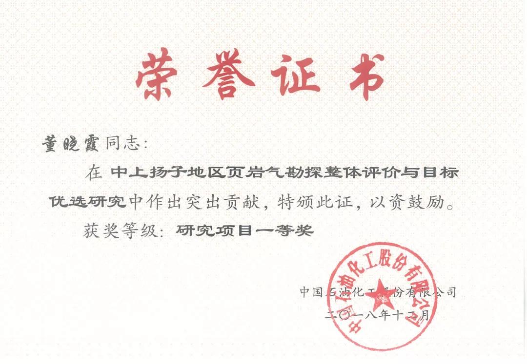 创新意识强,注重理论结合实践提升创新能力,积极参加培训、学术交流,提高综合素养,董晓霞先后参加过“四川盆地页岩气勘探与开发高级研修班”、“知识产权管理培训班”、“油气高效勘探专家专题研讨班”,2015年参加中国地质学会学术年会并开展论文汇报,2015、2017、2019年连续参加院第八届、第九届及第十届学术交流会,分别获优秀论文一等奖、优秀论文汇报奖、优秀主题发言奖。