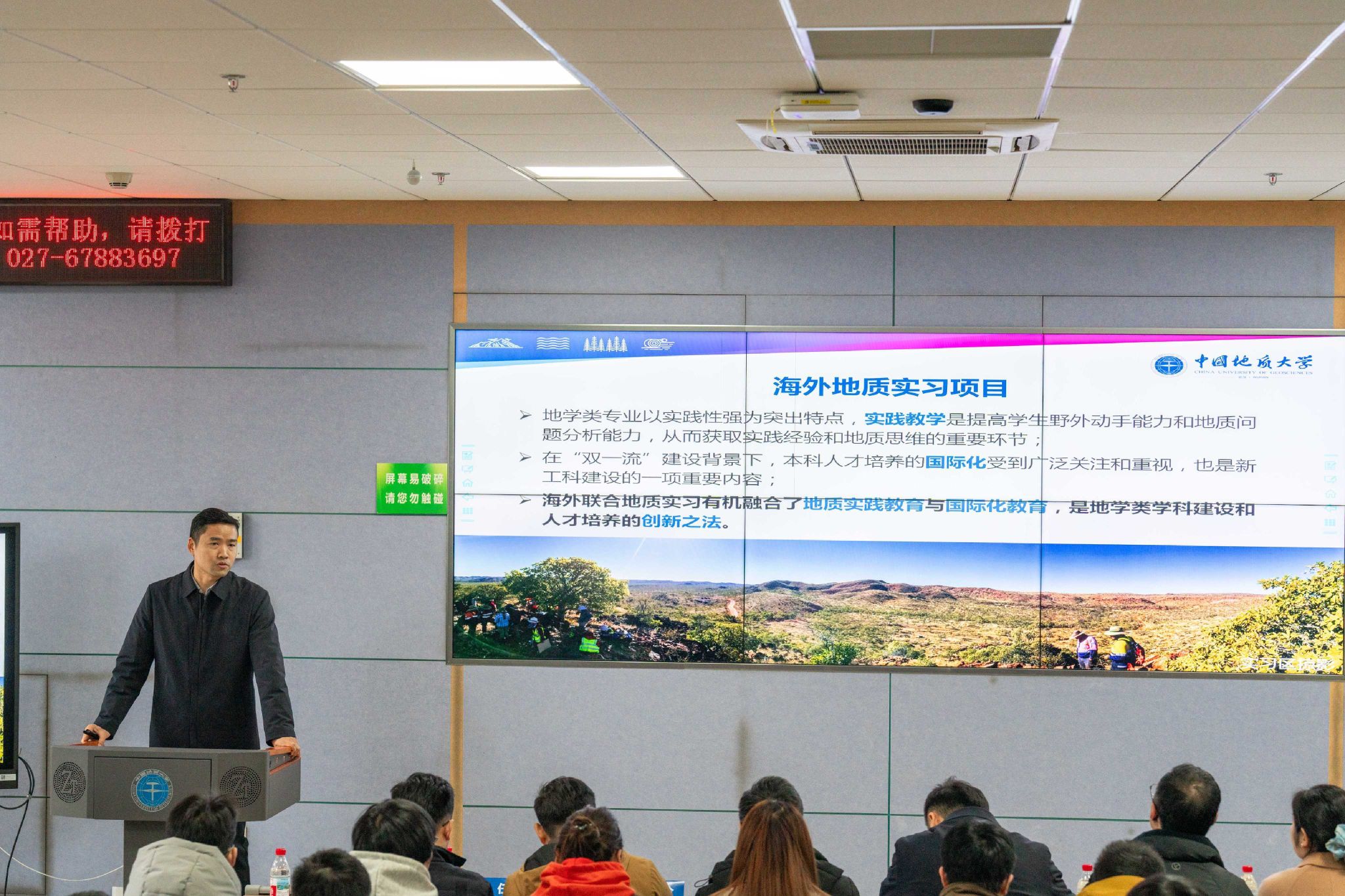 李占轲从海外地质实习背景、实习内容和实习成效三个方面介绍十大买球官方网站国外交流学习项目情况。他表示,学院海外地质实习项目经过多年发展,深度融合专业实践与国际化教育,是推进“双一流”学科建设、增强国际化人才培养内涵的重要方式。他讲到,澳大利亚海外实习项目通过野外实践、顶尖油气企业参访和国际名校的交流,成功构建了“野外实践+产业参访+学术交流+文化浸润”四位一体的海外实践新模式,拓宽学生国际视野,强化专业实践能力,是探索国际化人才培养重要路径。